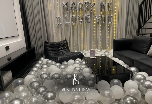 - Gợi ý: Cùng với setup này, khách hàng thường đặt thêm setup Tiệc mặn/ Tiệc ngọt/ Phòng bóng/ Căn phòng hoa hồng,... mang đến không gian rực rỡ và lãng mạn hơn. Để đặt dịch vụ tiệc và trang trí nhanh, vui lòng liên hệ Muse in Hanoi hoặc liên hệ Hotline/Zalo/Whatapps/Kakao: +84968599612