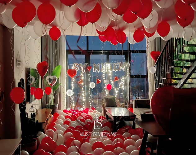 SETUP PHÒNG BÓNG SÀN BASICNếu bạn đang tìm kiếm một không gian lãng mạn, nhẹ nhàng và không quá cầu kỳ, setup phòng bóng basic với bóng thả sàn sẽ là lựa chọn hoàn hảo. Phong cách này không chỉ tinh tế mà còn tạo nên cảm giác bay bổng, phù hợp cho các cặp đôi yêu thích sự tối giản nhưng vẫn ấm áp.
